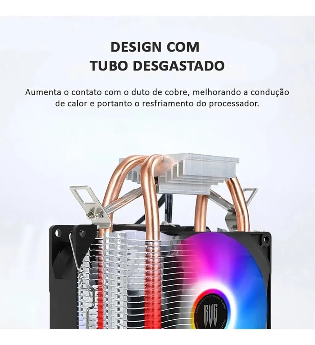 Aumente o desempenho e a vida útil do seu processador com o Air Cooler Processador Duplo RGB Universal.