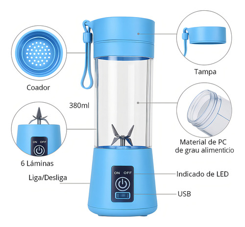 | Modelo | Mini Liquidificador Portátil USB 380ml |